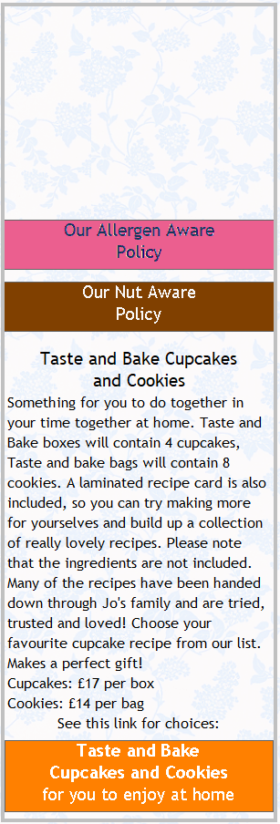 Yes, we offer gluten free, dairy free, egg free and vegan cupcakes. We do not use nuts in our cake bases (except in our carrot cake as an optional extra). We are a Nut Aware business, but can not guarantee nut free as we store nuts on the premises and use ingredients which have manufacturer's disclaimers for nuts. When we take orders for cupcakes we always ask about allergies and your cupcakes will come with a full list of ingredients on the box lid. Please see the link on this page to our allergen policy.